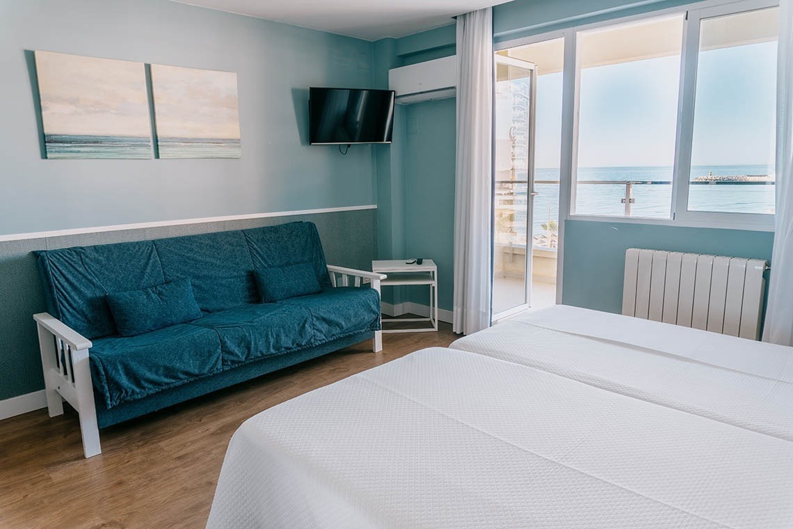 Desde estas estancias se puede disfrutar de unas envidiables vistas al mar y a la piscina del hotel.