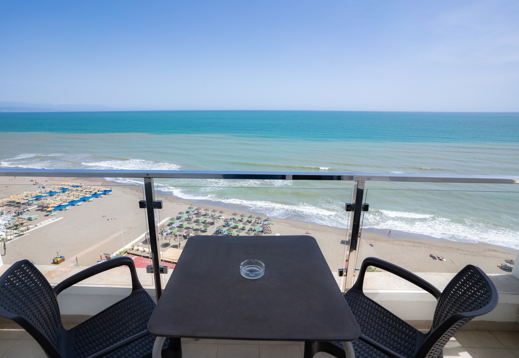Una amplitud de 22 m2 y una terraza con mesas y sillas desde la que se tiene vistas al mar son las principales características de estas habitaciones.